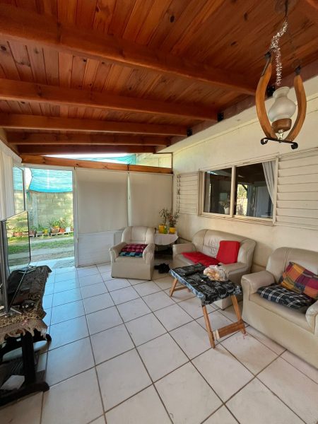 Casa de tres dormitorios, cocina, comedor, baño, galeria cerrada y garaje con deposito
