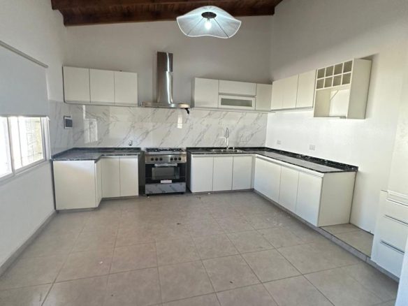 Cuenta con amplio y luminoso living comedor con puertas corredizas vidriadas con salida al jardín, cocina con muebles empotrados, dos baños completos con ante baño, 3 dormitorios amplios, galería, asador, cochera, pérgola, cuarto de depósito