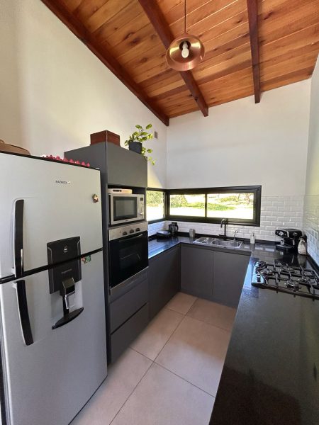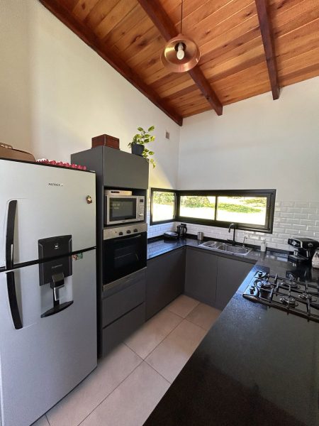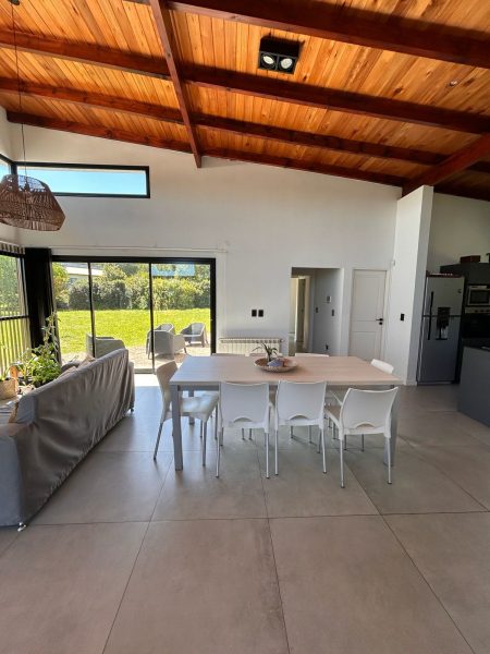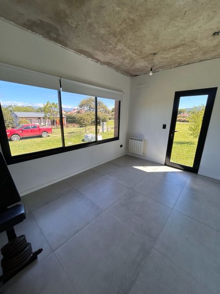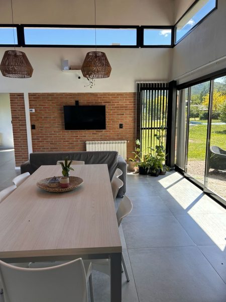 La casa de distribuye en una misma planta, en el ingreso nos encontramos con un amplio comedor, con vistas panoramicas a las sierras grandes, cuenta con una cocina integrada con muebles empotrados a medida para la optimización del espacio, living, oficina, 3 domitorios de los cuales uno cuenta con vestidor y baño en suite (baño habilitado, a terminar) y un baño completo con ante baño